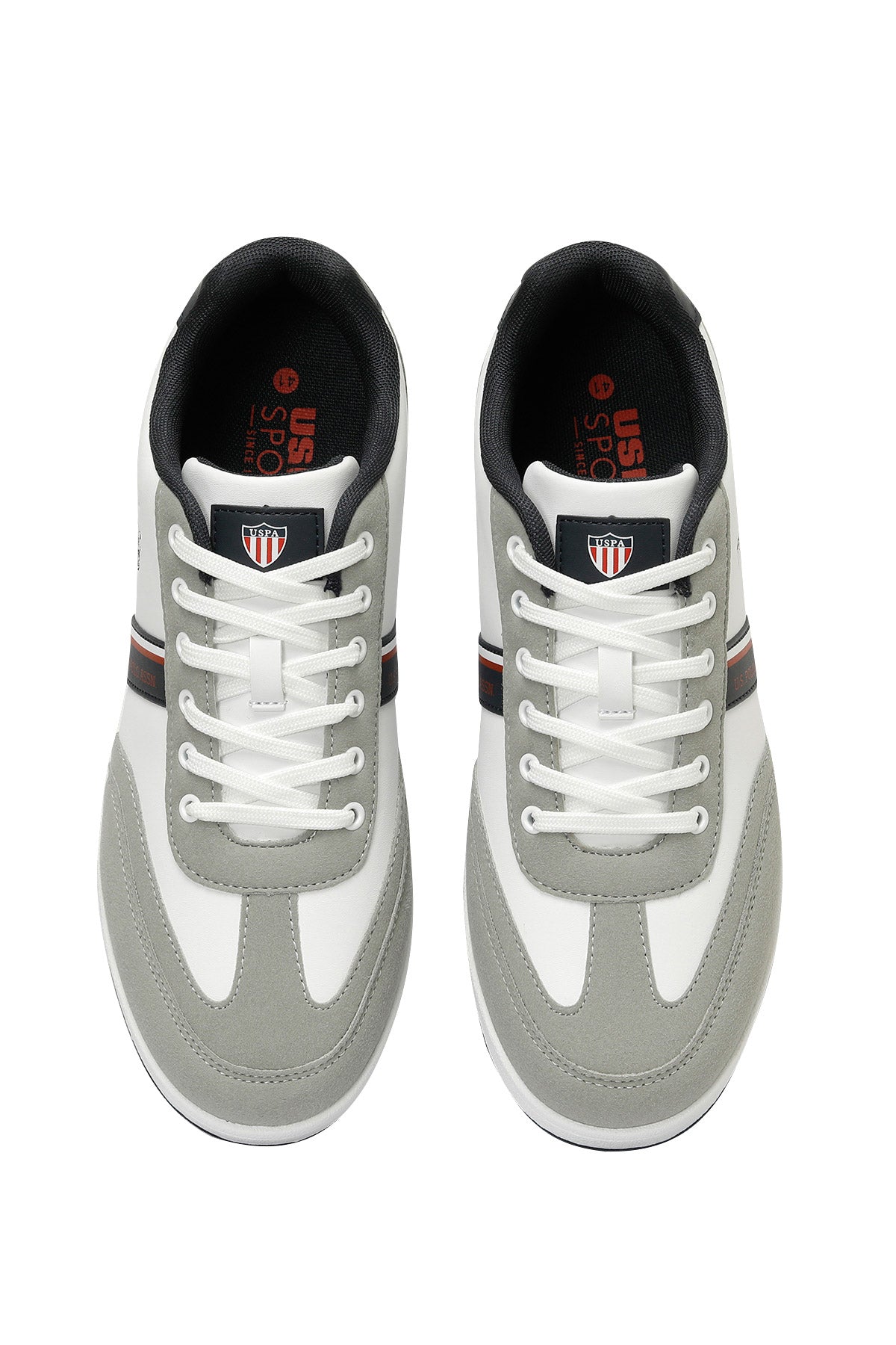 Pantofi sport cu garnituri de piele ecologica si textil, Alb/ Gri