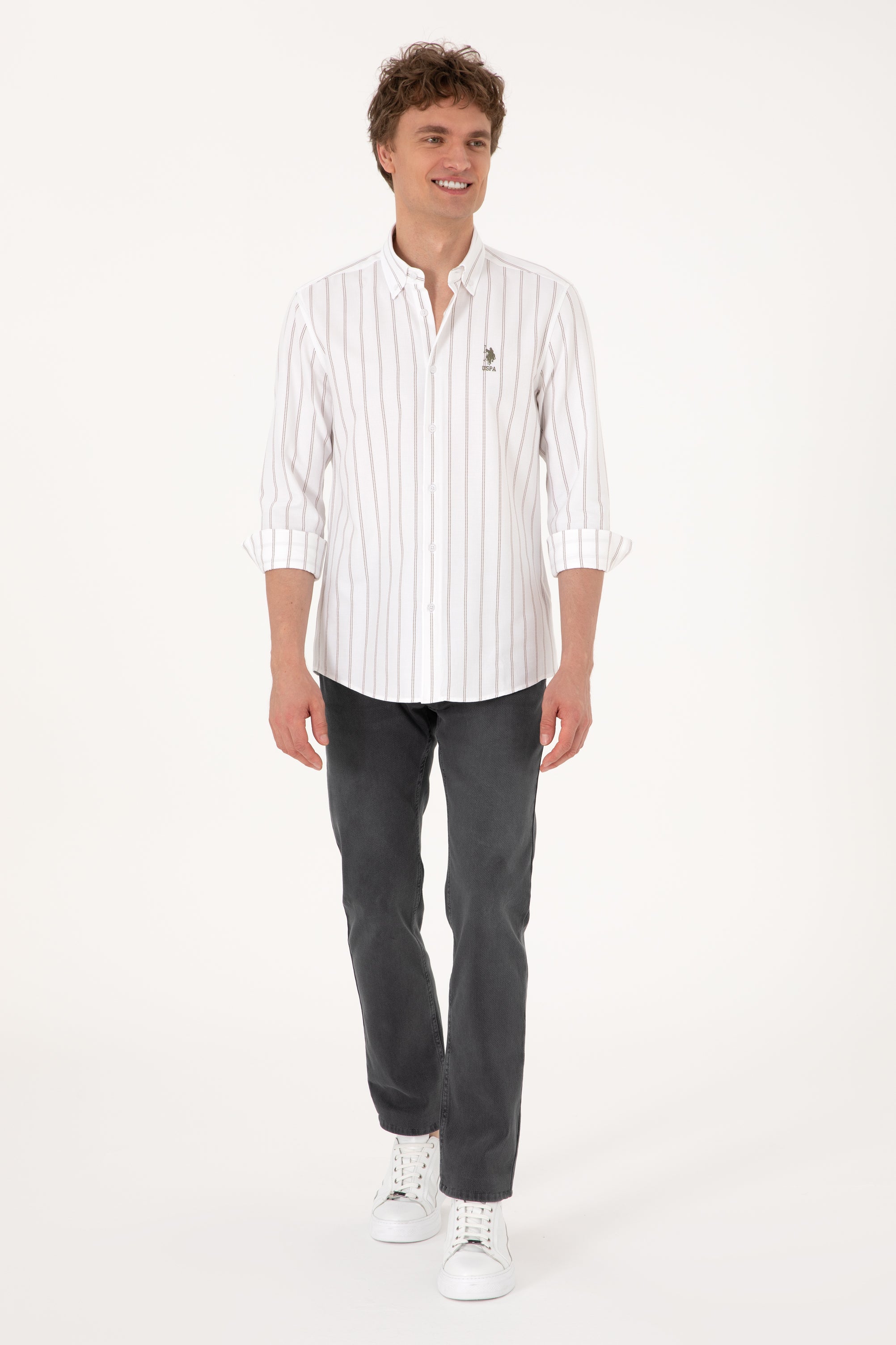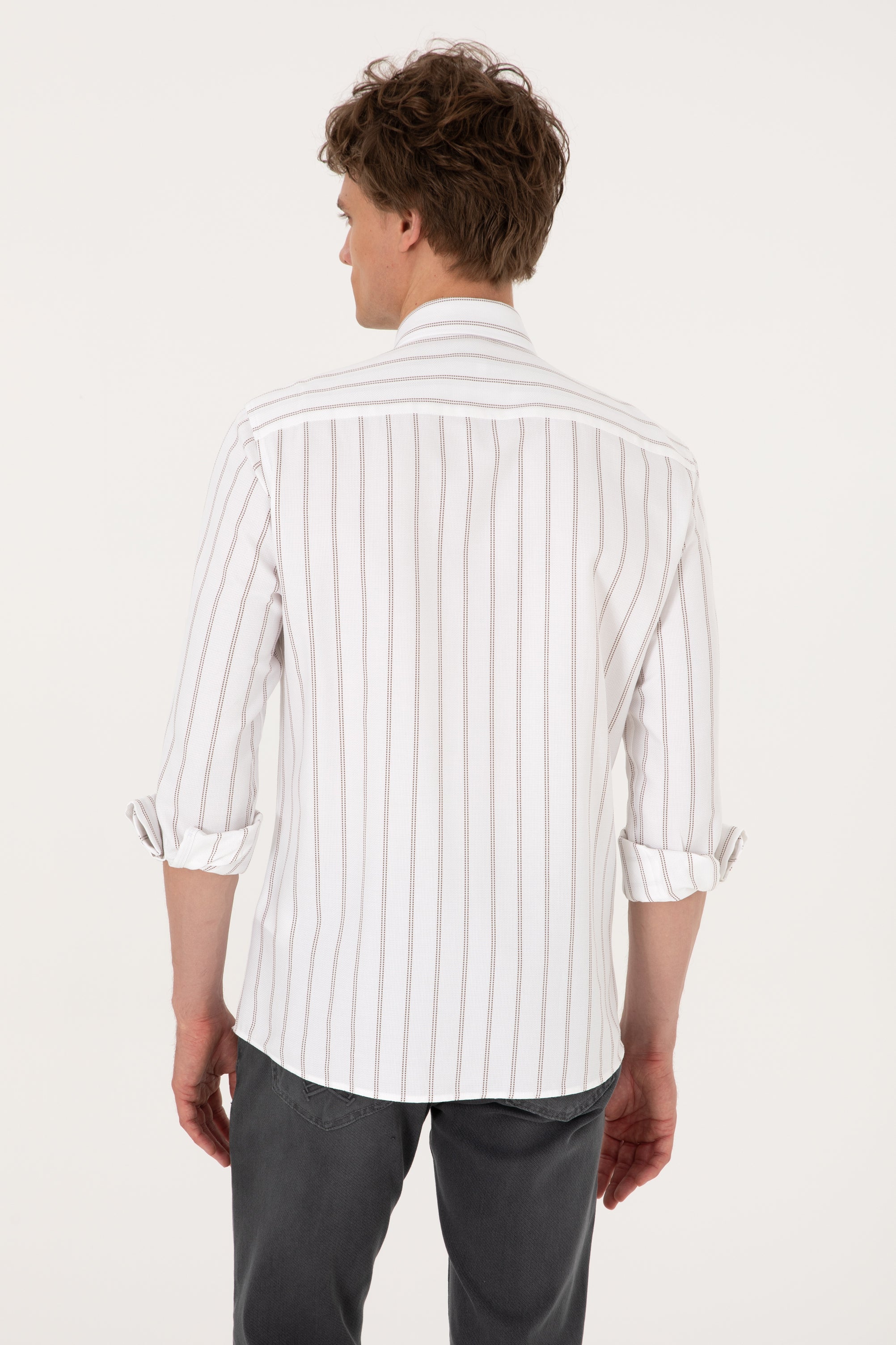 Camasa Barbat Alba cu Dungi Verticale si Textura Fina