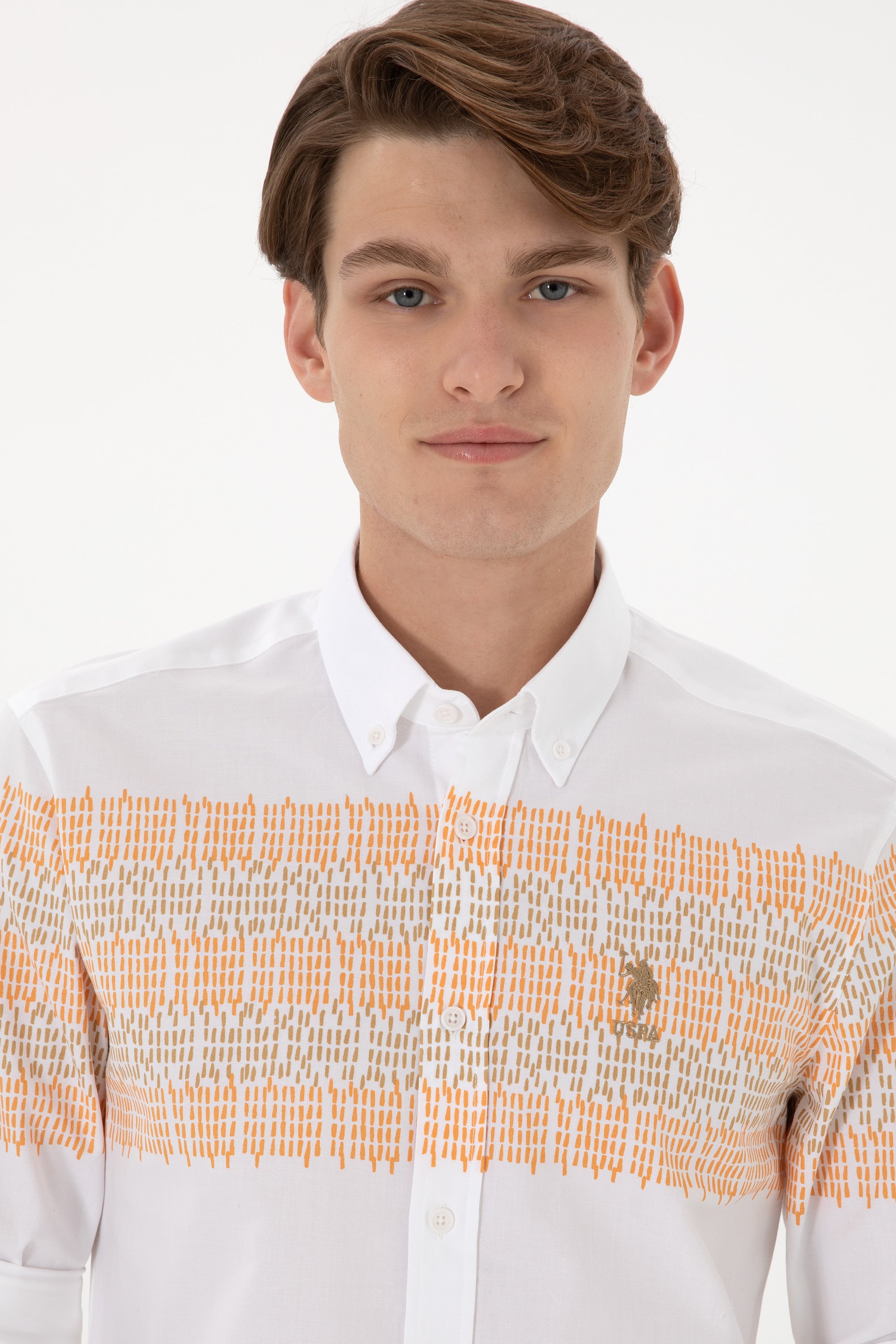 Camasa Barbat Alba Cu Nasturi La Guler Print Drops