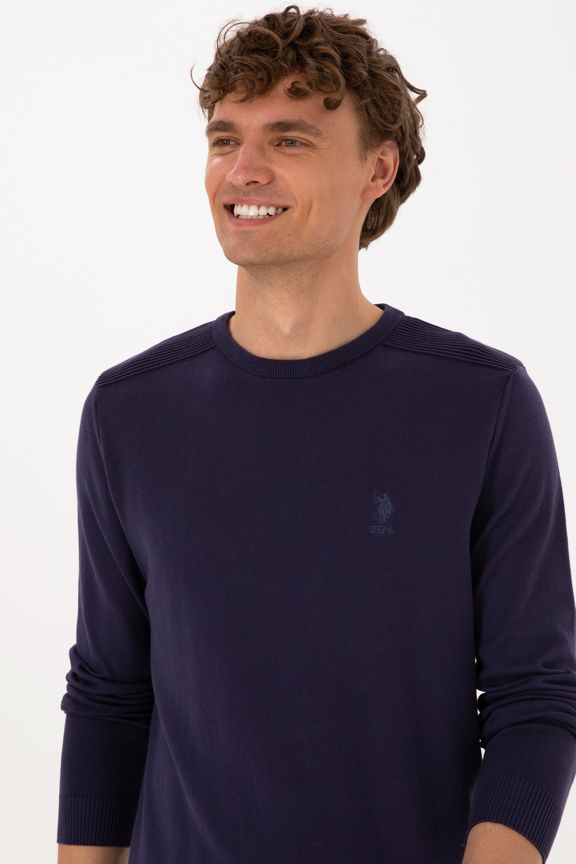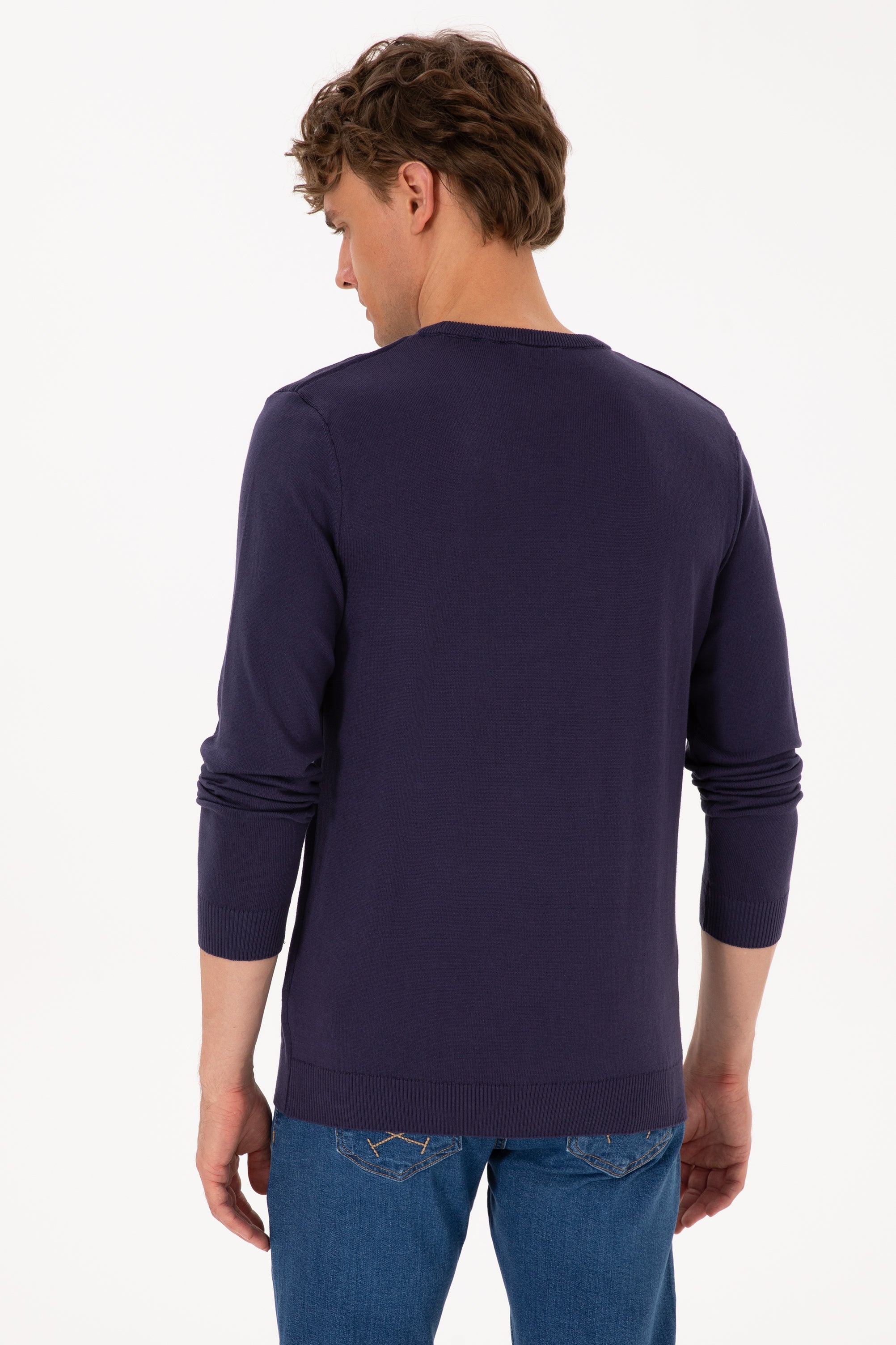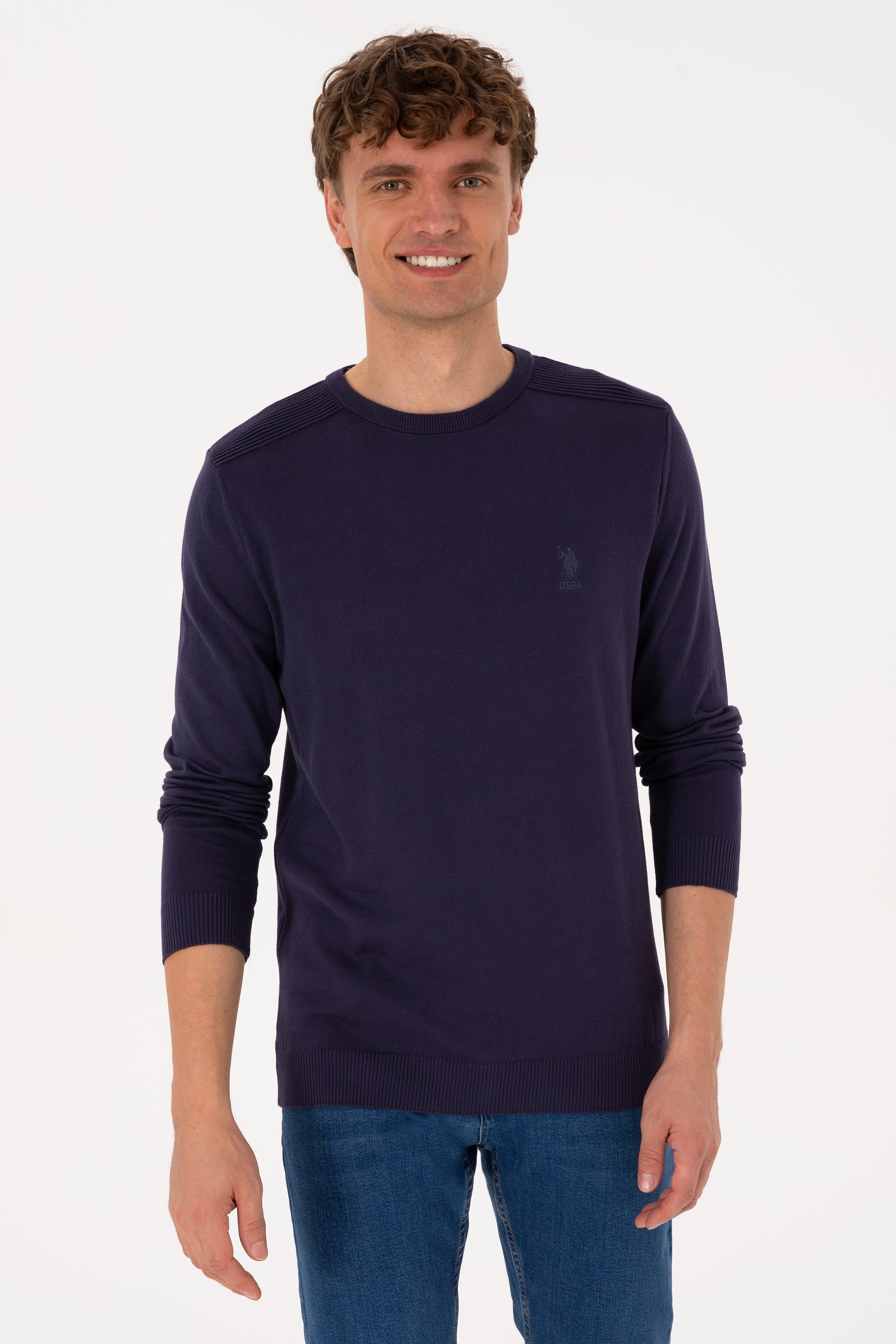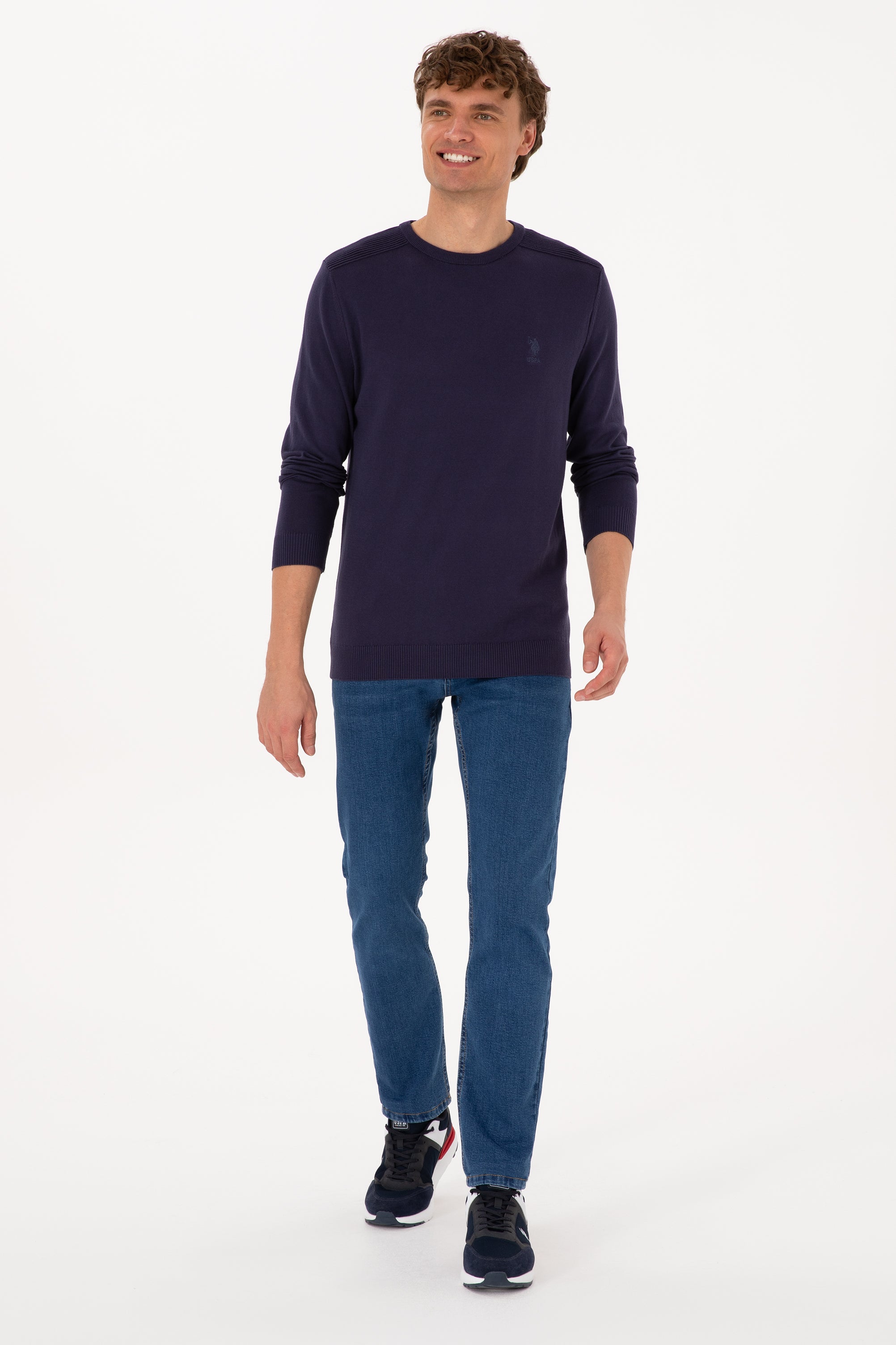 Pulover Barbat Pe Indigo Cu Guler Rotund