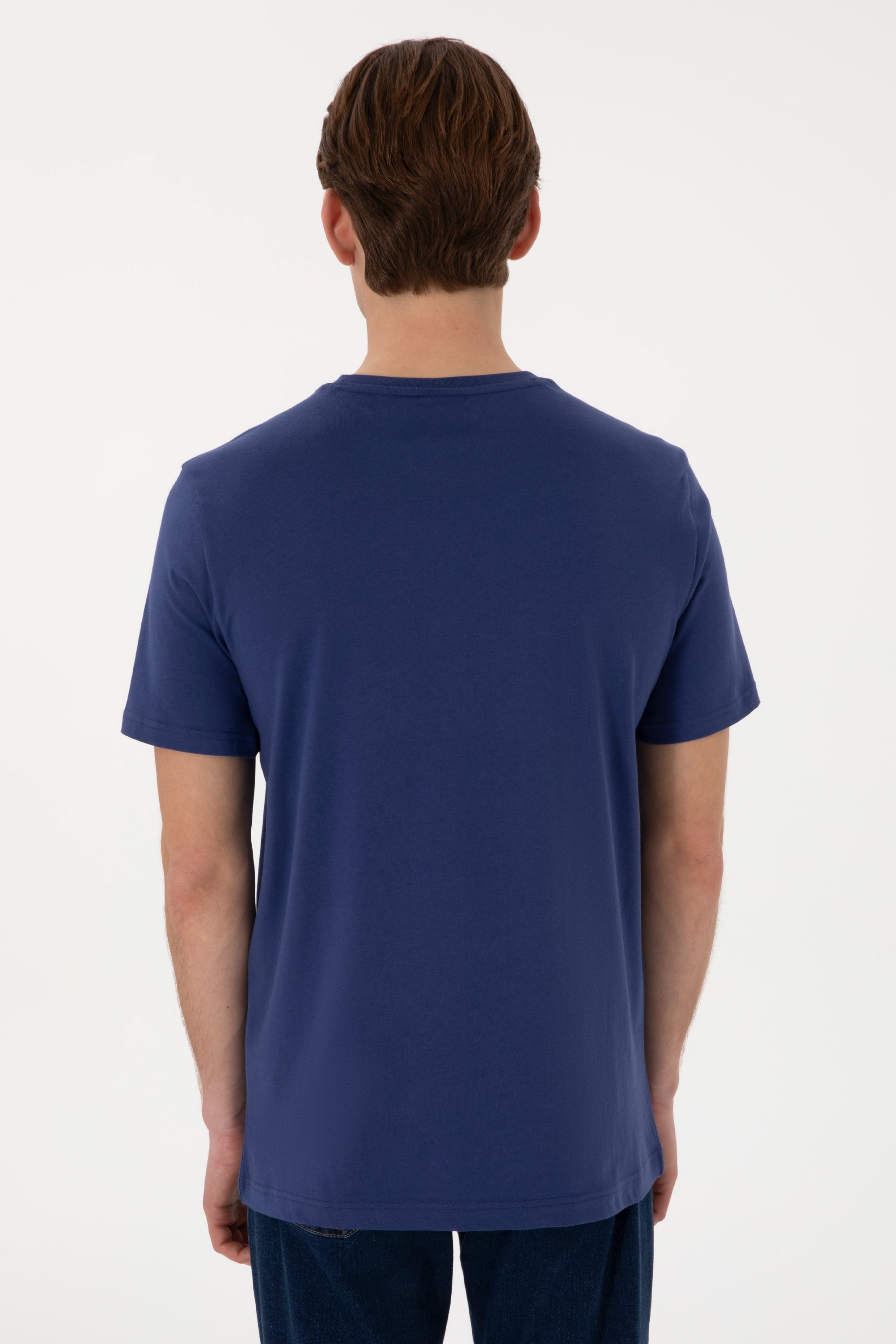 Tricou Barbat Indigo Cu Guler Rotund Si Print USPA Pe Piept
