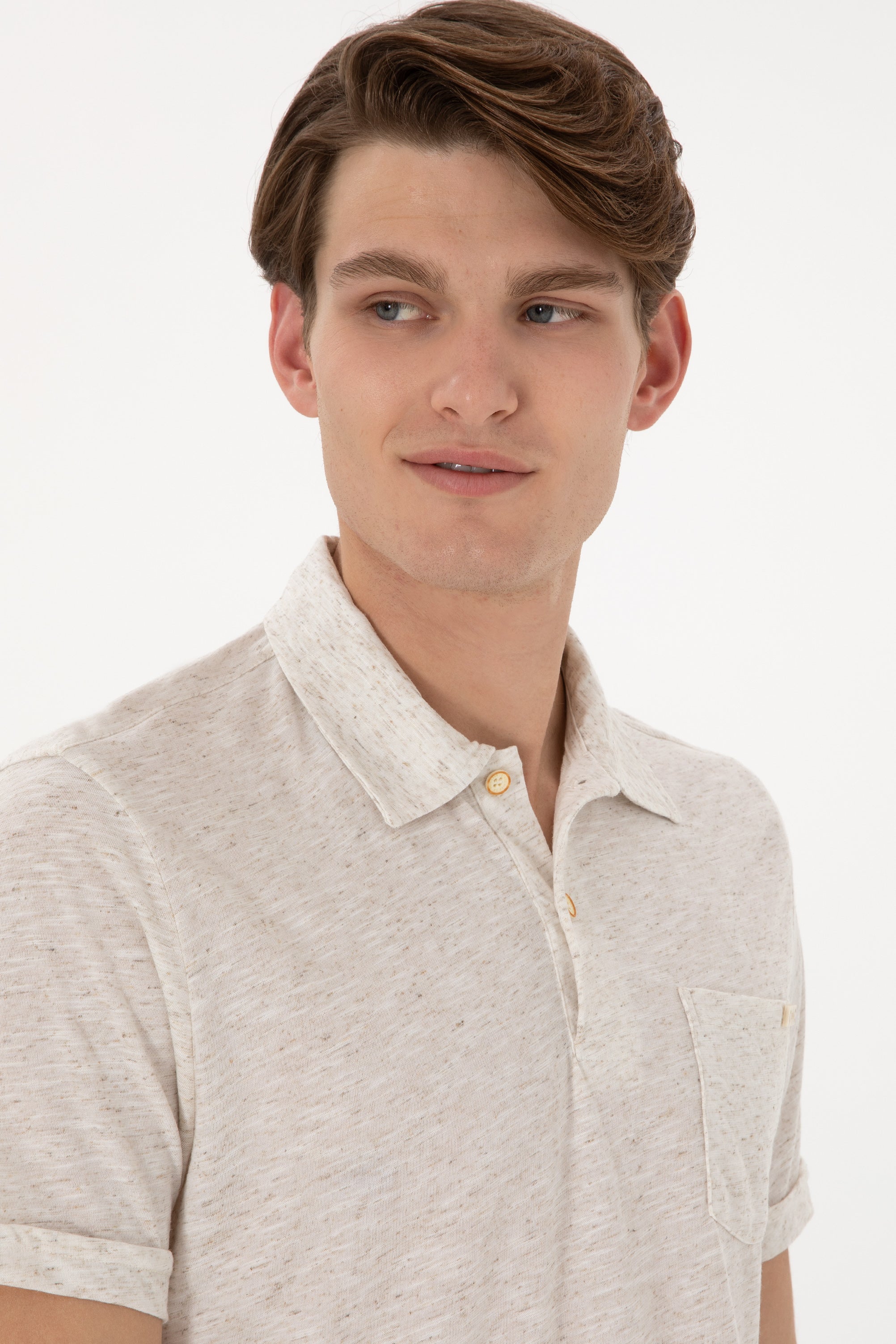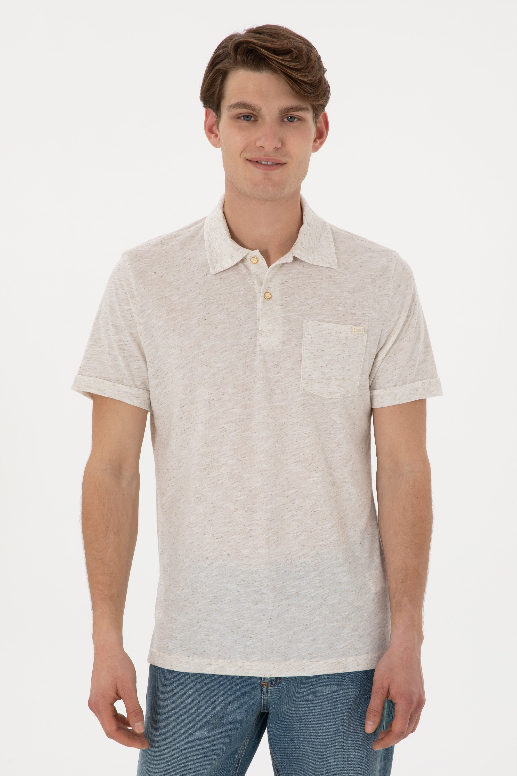 Tricou Polo Barbat Bej Cu Guler Moale si Imprimeu Desert Dust